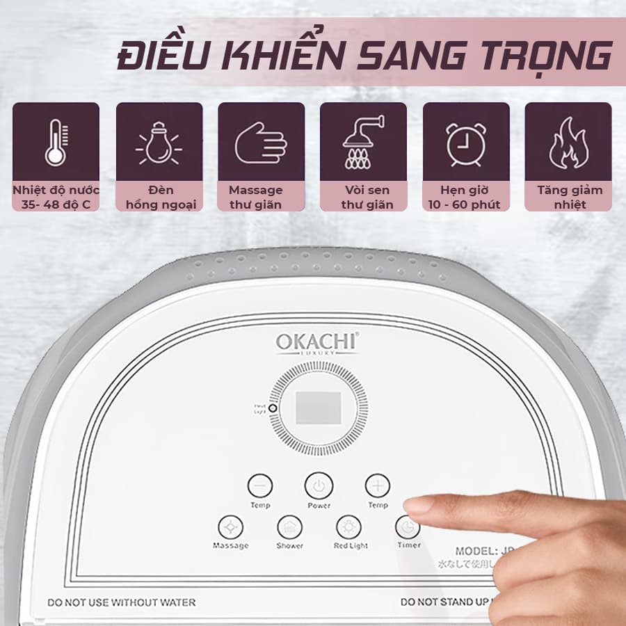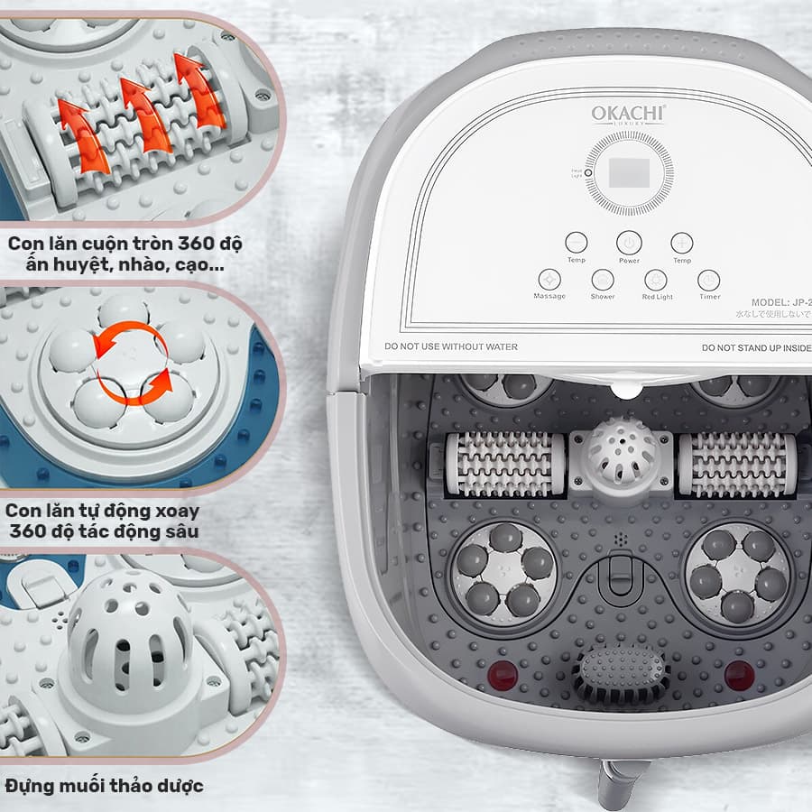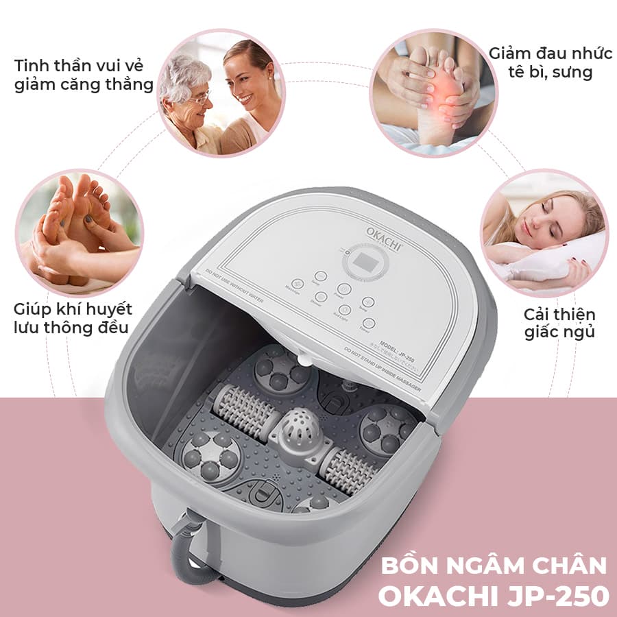 Bồn ngâm chân thải độc OKACHI JP-250 cao cấp với đa tính năng: massage nhiệt, đèn hồng ngoại, massage con lăn, làm nóng nước và điều chỉnh theo nhu cầu. Giúp đôi bàn chân được thư giãn, giảm đau nhanh, tái tạo năng lượng hiệu quả. Phù hợp với nhiều đối tượng sử dụng, đặc biệt là người cao tuổi, người thường xuyên phải làm việc căng thẳng, vận động chân nhiều, đứng hay ngồi trong thời gian dài. Hãy mua ngay hôm nay để nhận thêm nhiều ưu đãi hấp dẫn nhé!