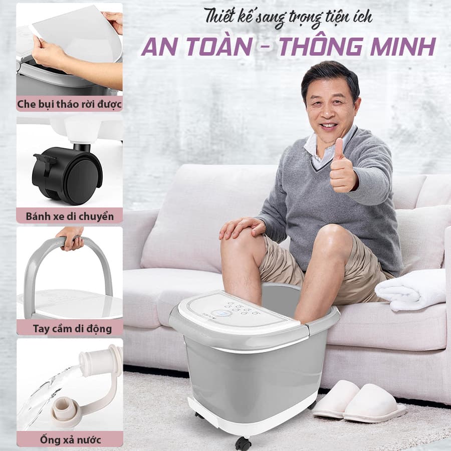 Với thiết kế quai xách, bánh xe di chuyển giúp người dùng thuận tiện trong việc dời bồn từ vị trí này sang vị trí khác một cách nhanh chóng. Sau khi sử dụng xong còn dễ dàng xả được dơ đi bằng ống xả thông minh. Vô cùng thuận tiện với những đối tượng người cao tuổi, tiết kiệm tối đa thời gian dùng và vệ sinh sản phẩm.