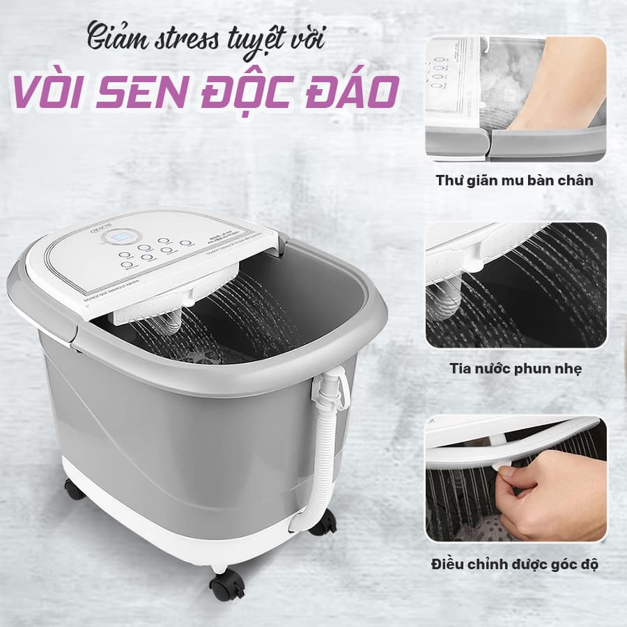 Bạn sẽ không thể tìm được một chiếc bồn ngâm chân nào có tính năng hiện đại như OKACHI JP-250 cao cấp. Được tích hợp chế độ phun nước từ vòi sen, nhẹ nhàng tác động và kích thích đến mu bàn chân, giúp đôi chân được thư giãn toàn diện.